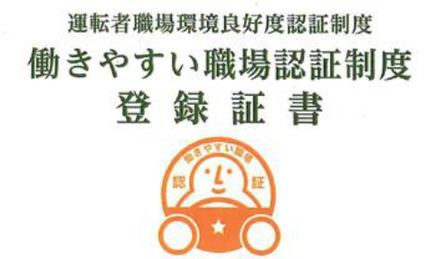 本社・京都共同配送センター・大阪共同配送センターの3拠点にて国土交通省創設の自動車運送事業者対象の『働きやすい職場認定制度』を取得しました。